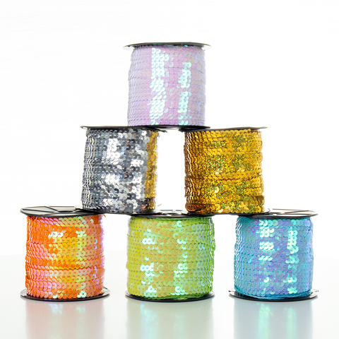 ステージ衣服用6mmフラットレーザースパンコールラウンドストリングライン光沢PVCスパンコールスパンコールテープ