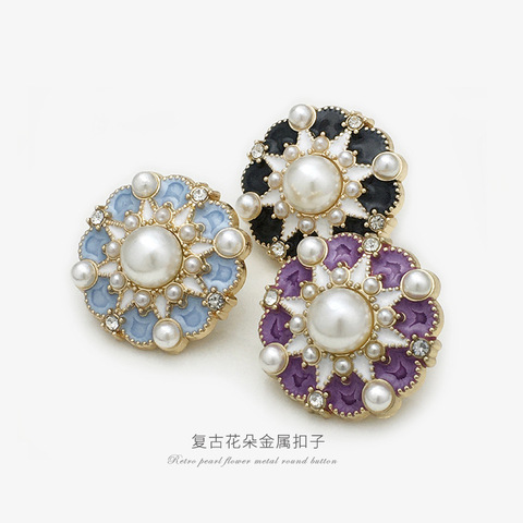 パープルドットオイル花型パールメタルボタン多目的コート装飾ボタンスーツコートフラワーボタン