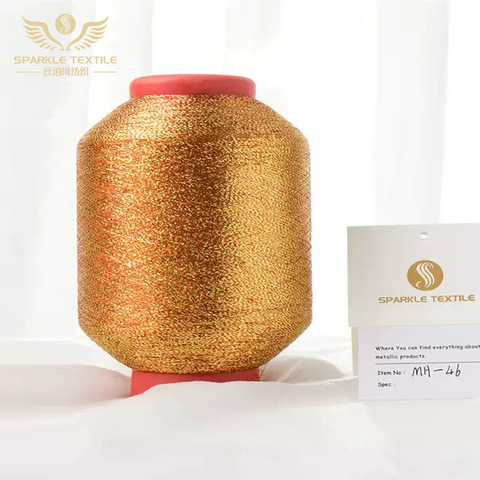 उच्च गुणवत्ता वाले mh टेप शुद्ध सोने के ग्लिटर धागे कारखाने थोक अनुकूलित रंग धातु धागा बुना हुआ धातु धागा