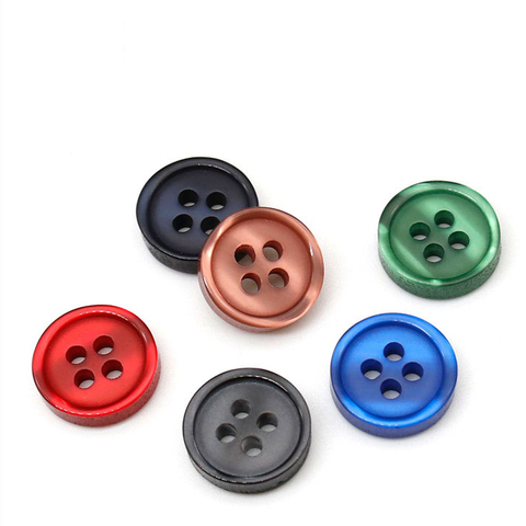 Botão de resina redondo de plástico, atacado, em estoque, soprado escuro, fosco, 4 furos, botão de costura
