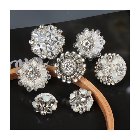 Bordados elegantes de alta qualidade, botão de diamante, cristal, floração, vidro, strass, botões para costura, casaco de inverno