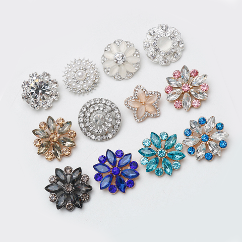 Venda quente Personalizado Liga de metal Strass Botão de cristal botão de Strass botões de flores de strass